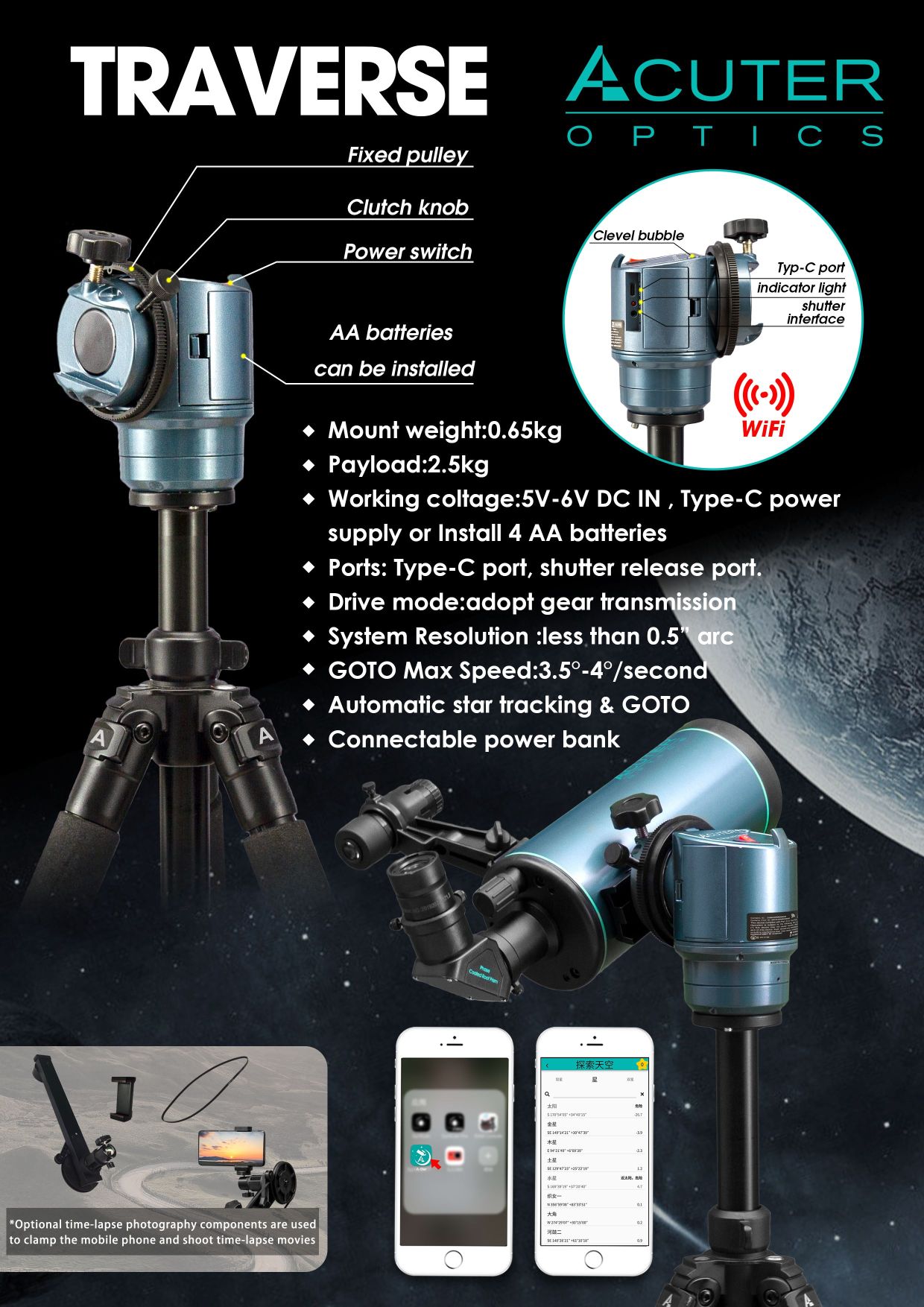 Acuter Traverse Wifi Goto Reisemontierung