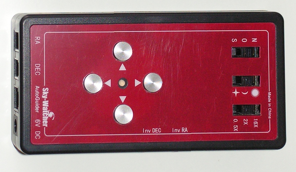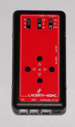 Die normalen Steuerungen der EQ3 und EQ5 Montierungen besitzen im Gegensatz zur HEQ5 PRO oder EQ6 PRO keinen Autoguider-Eingang. Viele Sternfreunde möchten aber mit diesen kleineren, leicht transportablen Montierungen auch fotografieren. Die von der Firma Lacerta entwickelte Handbox (welche Dank einer Kooperation seit Sommer 2012 unter dem Markennamen SkyWatcher läuft) besitzt nicht nur einen Autoguider-Eingang, sondern auch die vorprogrammierten Stern- Mond- und Sonnengeschwindigkeiten.