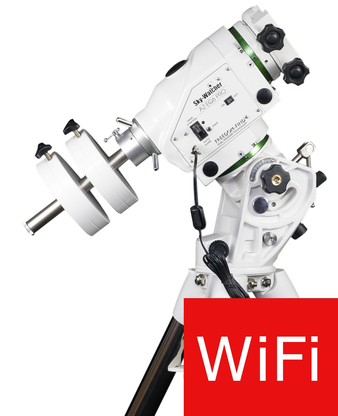 Die AZ-EQ6-pro hat eine Polhöheneinstellung von 0 bis 90 Grad, und besitzt an beiden Achsen Encoder. Auch bei einer manuellen Verstellung verliert die Montierung dadurch die GoTo-Orientierung NICHT! Die visuelle Tragfähigkeit ist dank des verstärkten Polblocks grösser als bei der EQ6 (20kg). Die inneren Getriebe sind (wie auch bei der EQ6-R) durch Zahnriemen ersetzt, und daher ist die Nachführung deutlich präziser als bei der alten EQ6-Familie. Es ist die modernere und komfortablere Version des alten Veterans, welche vor allem für Langzeit-Fotografie sehr empfehlenswert ist.