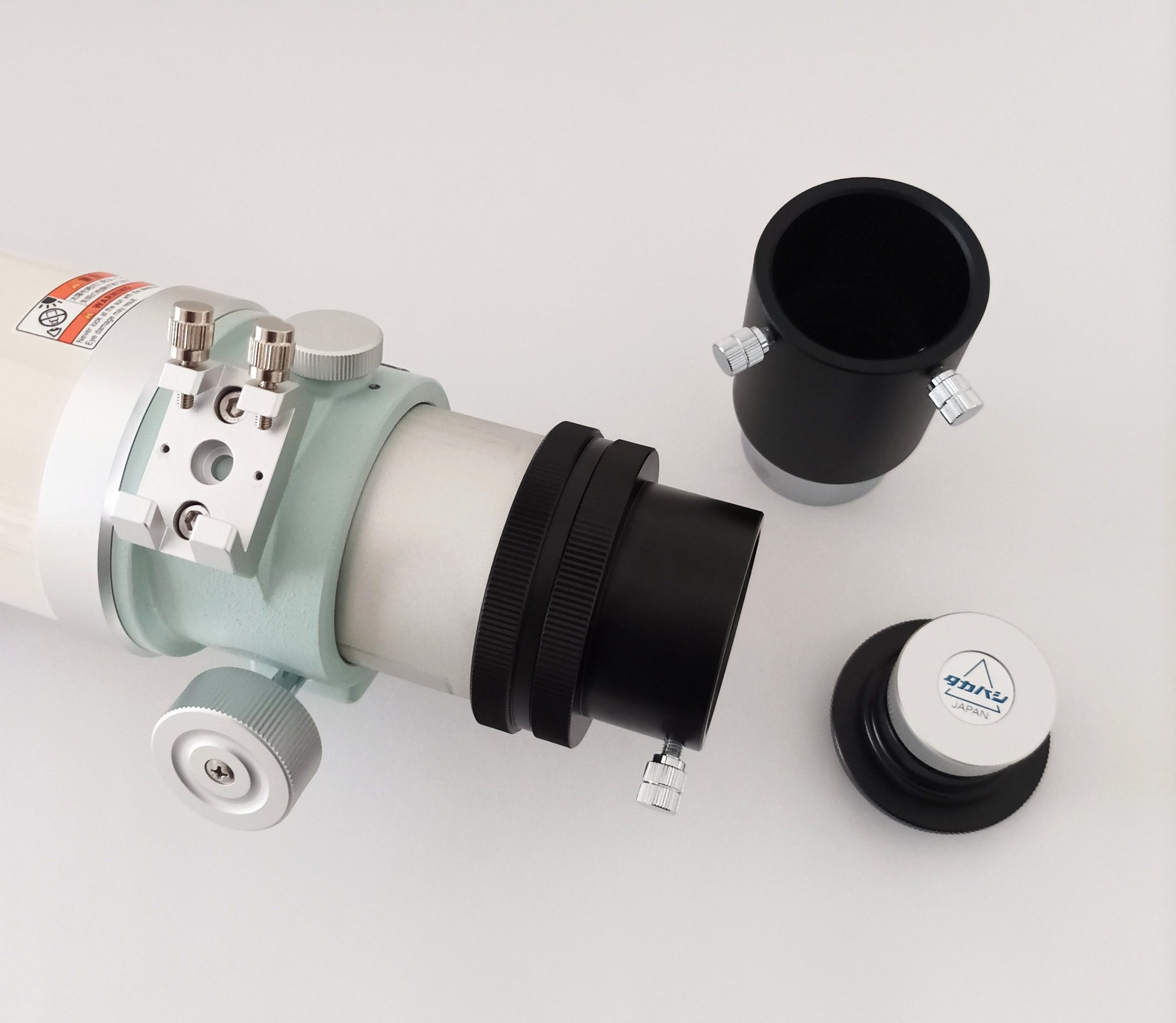 Okularauszug: 70mm Außendurchmesser, M64x0.75 Innengewinde mit Adapter auf 2" und 1,25"