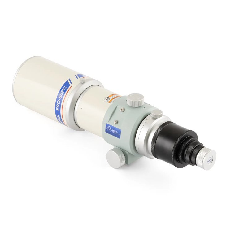 Der Tubus ist, abgesehen vom Innenleben, mit dem des FSQ-85 weitgehend baugleich, es können die bisherigen Schellen verwendet werden, auch der Okularauszug ist der selbe. Der Reducer des FSQ-85 ist für den FSQ-80FC nicht geeignet, Takahashi wird in Zukunft aber einen passenden Reducer anbieten. Das große, ebene Bildfeld gepaart mit feiner Sternabbildung ist natürlich auch visuell ein Genuss, eine 2" Okularklemme ist jedoch nicht enthalten und muss gesondert bestellt werden (TKP27110S).