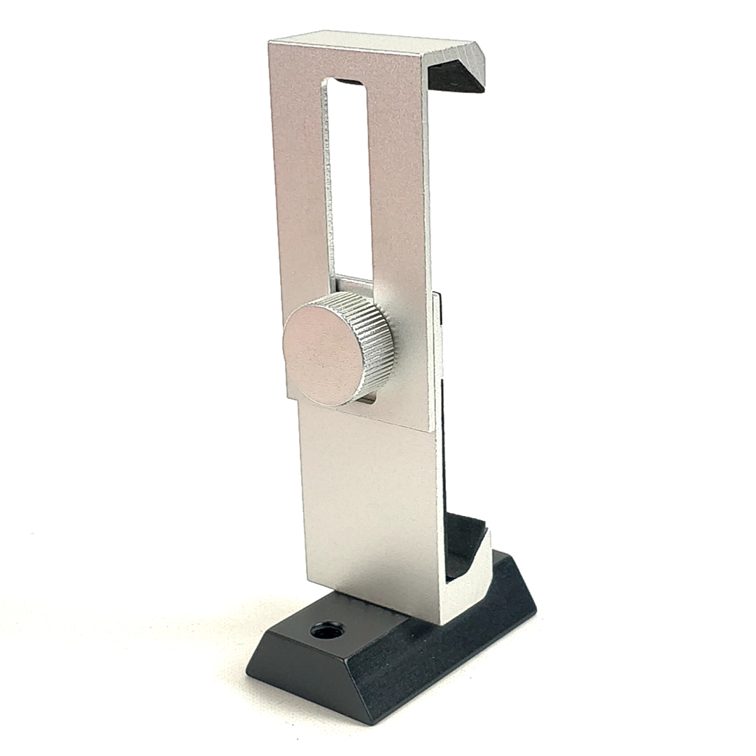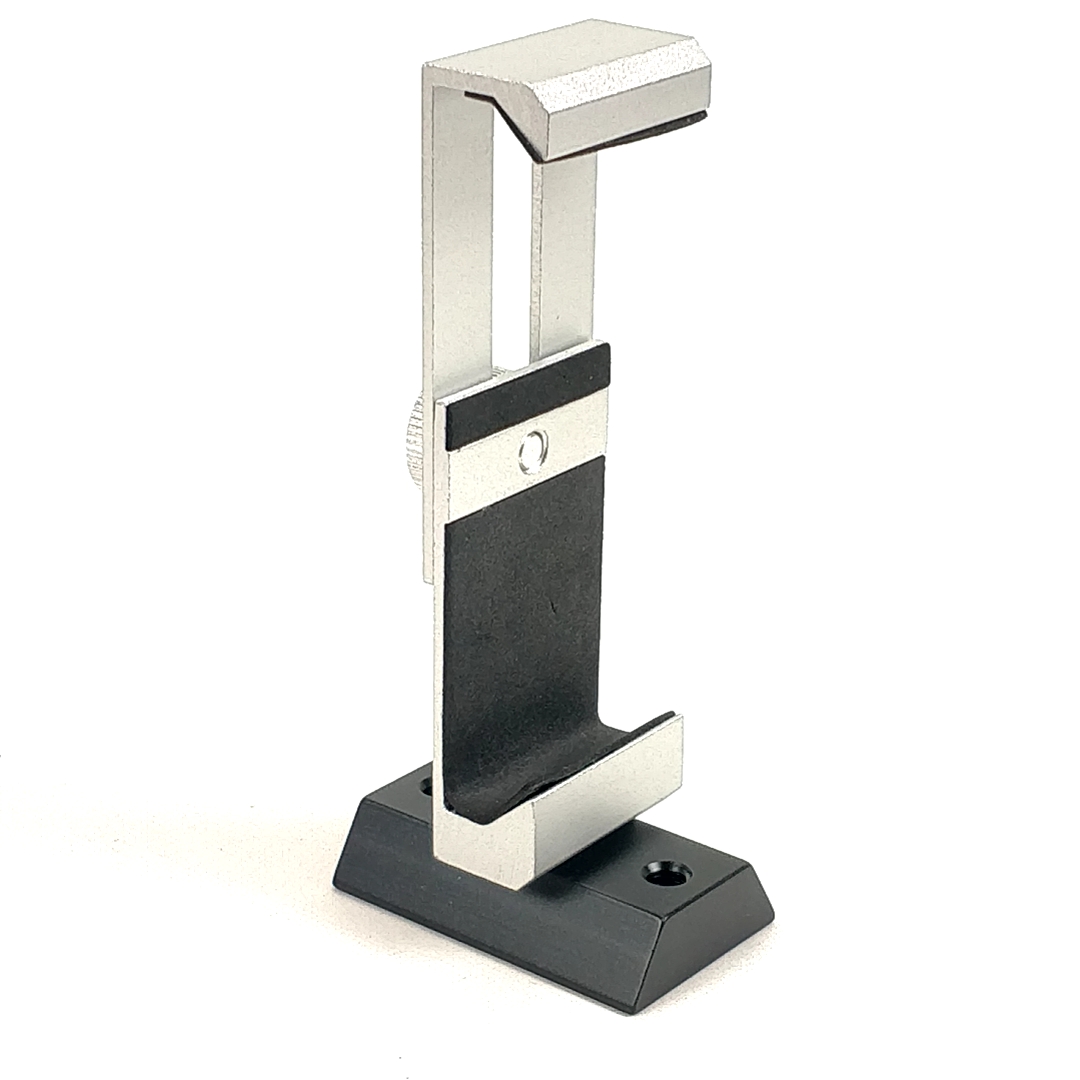 Endlich eine stabile Handyhalterung ganz ohne Kunststoffteilen, welche Ihr Mobiltelefon sicher hält. Die Fixierung passiert durch einen einzigen Schraube. Die sandgeblaste Alufläche an der hinteren Schiereinheit sorgt dafür, dass der Abstand nicht nachlässt, der gummierte Griff hält die Handy rutschsicher fest.