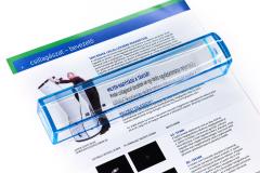 Der Lesestab ist 5 cm breit und 20 cm lang und hat eine 2-fache Vergrößerung.