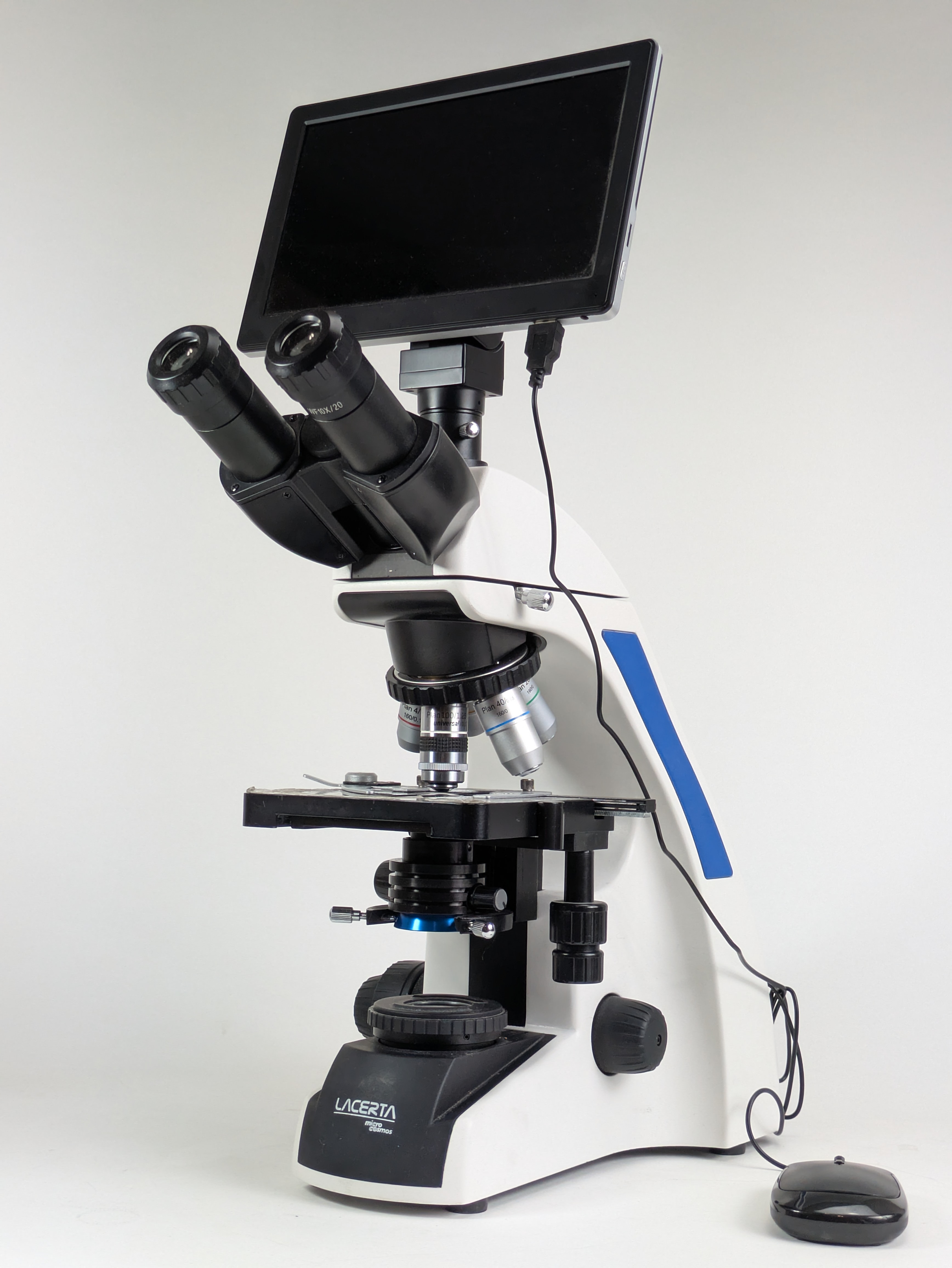 MicroCosmos Dunkelfeld Mikroskop für Vitalblut Analyse mit Stand Alone HDMI Kamera, LCD Bildschirm, 5 PLAN Objektiven (4x, 10x, 20x 40x, 100x-iris) bis zu 1000x Vergrößerung