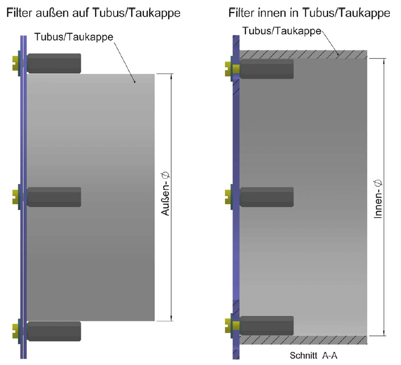 erhalten. Es ist aber ebenso möglich den Filter innen in den Tubus