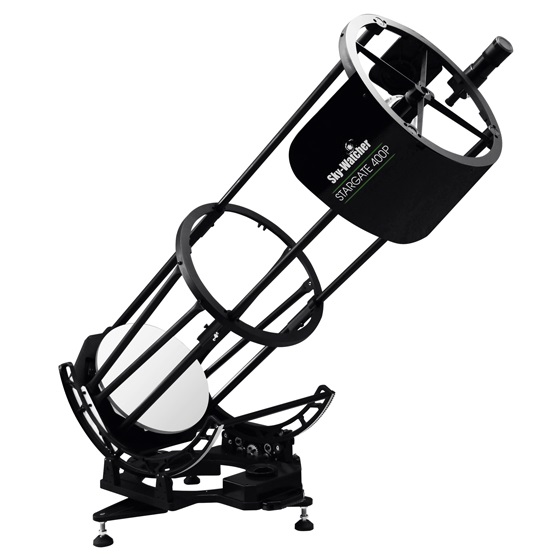 Der 16 Zoll Skywatcher Dobson wurde überarbeitet und ist nun als Stargate-400P als vollständige Gitterrohrkonstruktion erhältlich. Dadurch ist er leichter zu transportieren und aufzubauen, er kann von einer Person getragen werden. Ausgestattet mit dem bewährten SkyWatcher SynScan GoTo-System mit einer großen Datenbank von 42.900 Objekten.