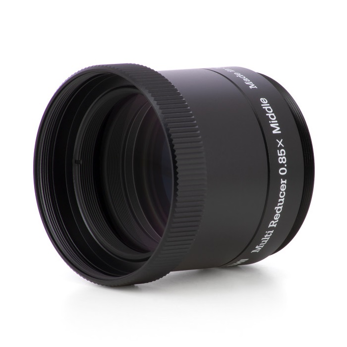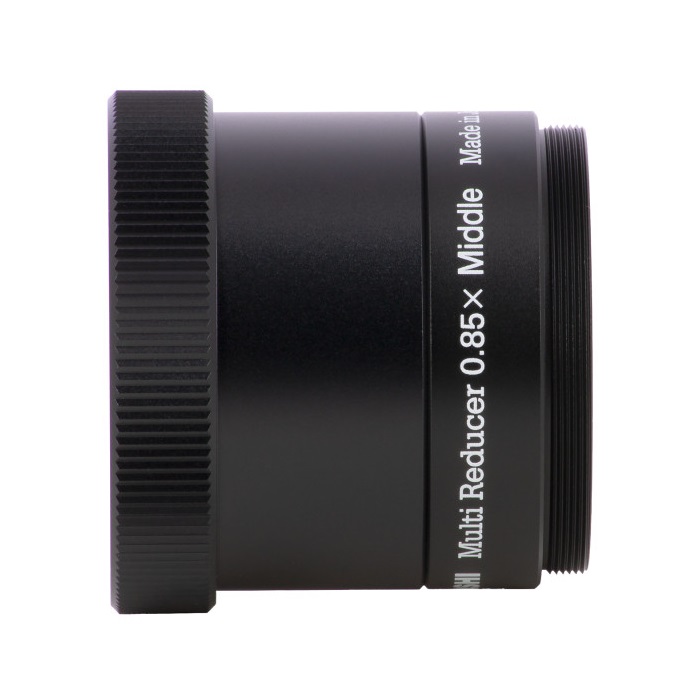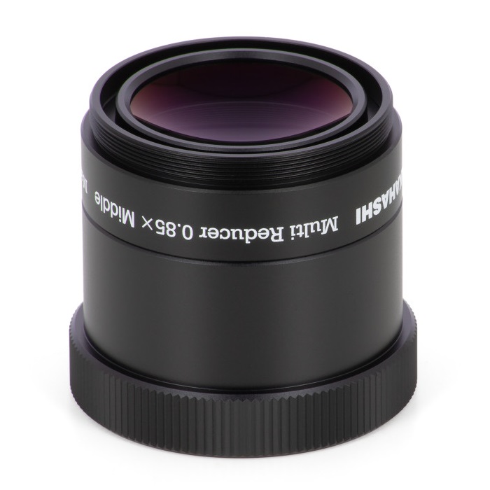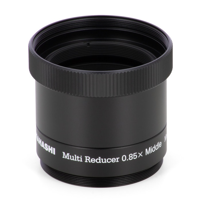Analog zum Multi-Flattener hat Takahashi einen ähnlich universell einsetzbaren Reducer entwickelt, geeignet für Refraktoren bis 600mm Brennweite. Er ersetzt die bisherigen Reducer der Geräte FS-60C und FC-76D, der auf den ersten Blick etwas geringere Verkürzungsfaktor wird mit kompromissloser Vollformat-Tauglichkeit mehr als kompensiert, die alten Reducer waren nur bis APS-C kompatibel. Die Entwicklung immer hochauflösenderer Sensoren fordert die Verwendung gut korrigierter Optiken mit feiner Sternabbildung über einen großen Bereich, dies wird hier mit einer sehr aufwendigen Konstruktion aus 4 Linsen in 3 Gruppen erreicht.