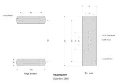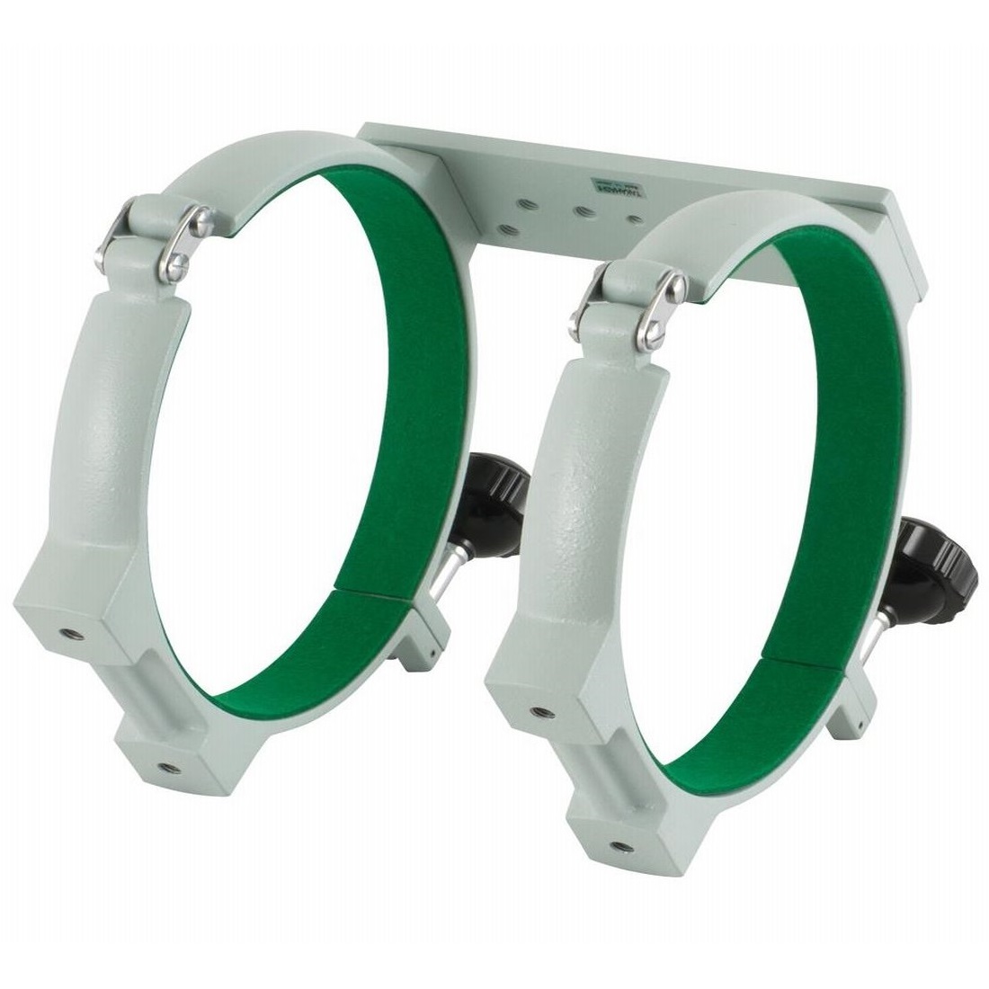Rohrschellenpaar für den Epsilon-160, sowie für den alten MT-160 Newton, Durchmesser 204mm, inklusive langer Top Plate zur Montage von Leitrohren oder anderem Zubehör. Die hochwertigen Rohrschellen sind sehr massiv, der Tubus wird mit großen, auch mit Handschuhen gut greifbaren Klemmschrauben geklemmt.