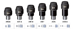 Die Pentax XW-Serie zählt zu den erfolgreichsten Okularserien am Markt. Großes Sehfeld vom 70° gepaart mit einheitlichen Augenabstand von 20mm bei allen Brennweiten garantiert höchsten Beobachtungskomfort. Die Pentax SMC-Vergütung sorgt für maximale Transmission, der optische Aufbau besteht je nach Brennweite aus sechs bis acht Linsen, es wurde mechanisch viel Bauaufwand für eine möglichst gute Streulichtunterdrückung betrieben. Die Augenmuscheln können durch Drehen in der Höhe verstellt werden, so dass egal ob mit oder ohne Brille, immer ein bequemer Einblick gegeben ist. Unter der Augenmuschel findet man ein M43-Gewinde, mit passendem Adapter können hier Kameras zur Okularprojektion angeschraubt werden.